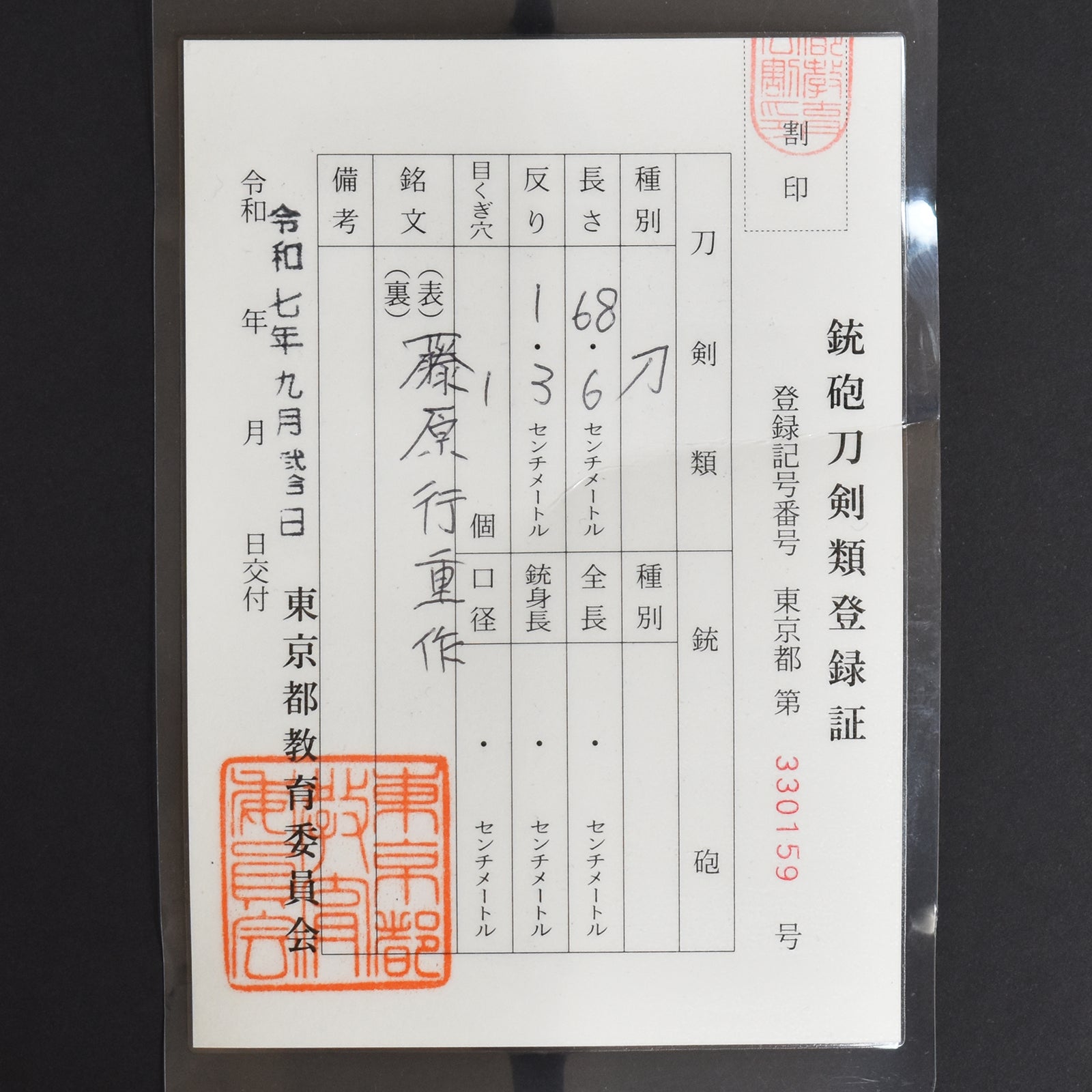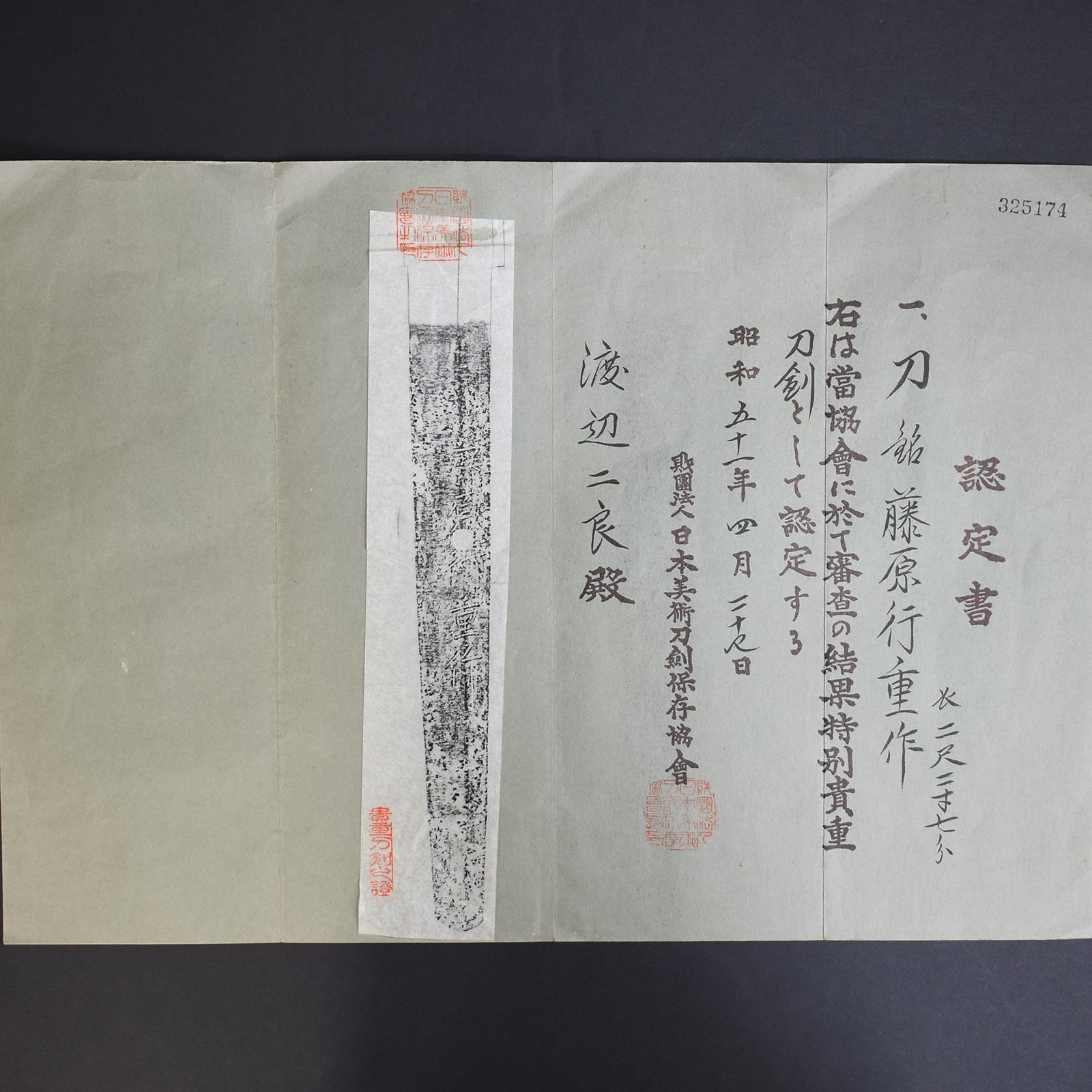 Authentic nihonto japanese katana long sword FUJIWARA YUKISHIGE SAKU 藤原行重作 signed with NBTHK tokubetsu kicho paper.