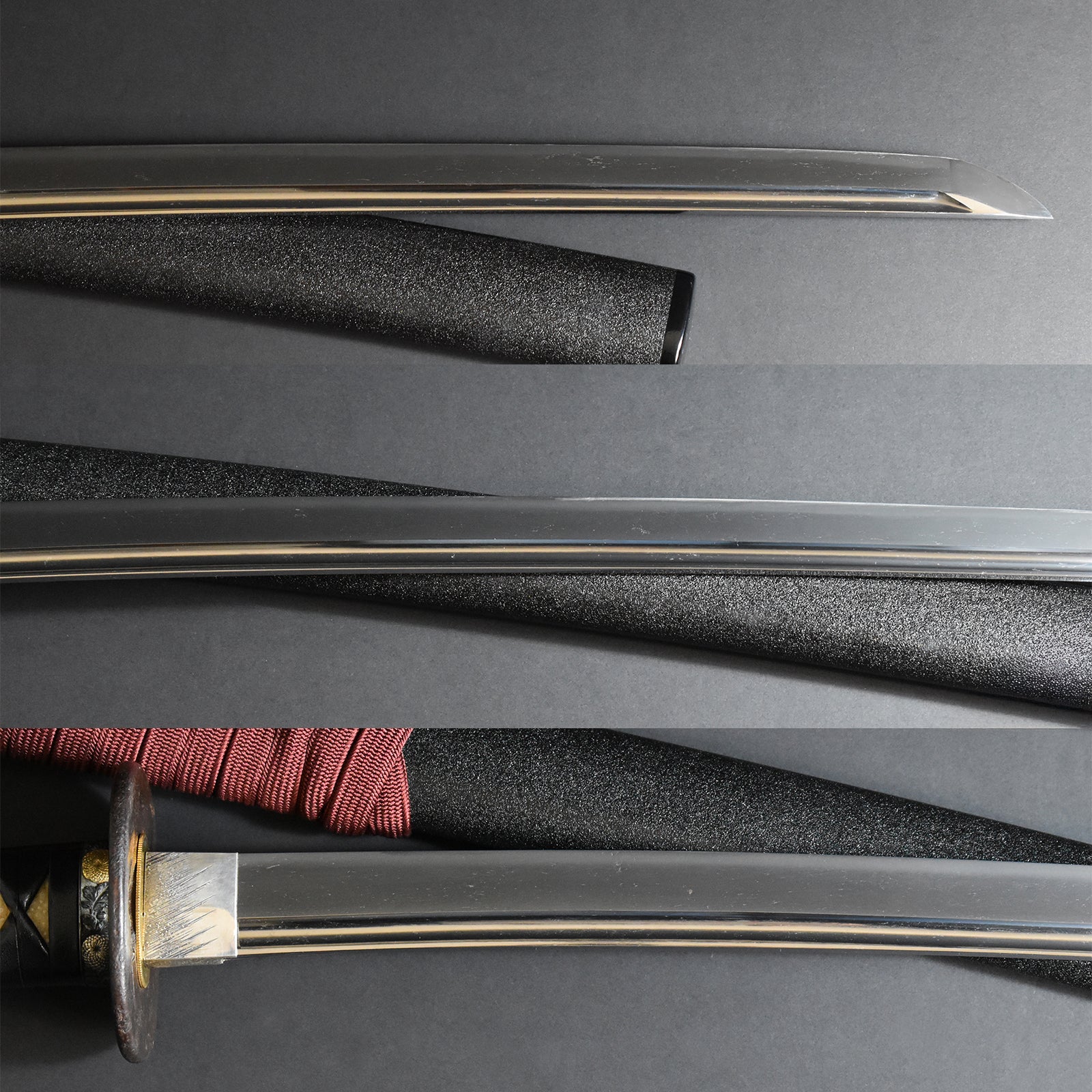 Please pay attention to awesome hamon and good hada texture on the long blade(69.6cm) and elaborate high grade koshirae with excellent parts.