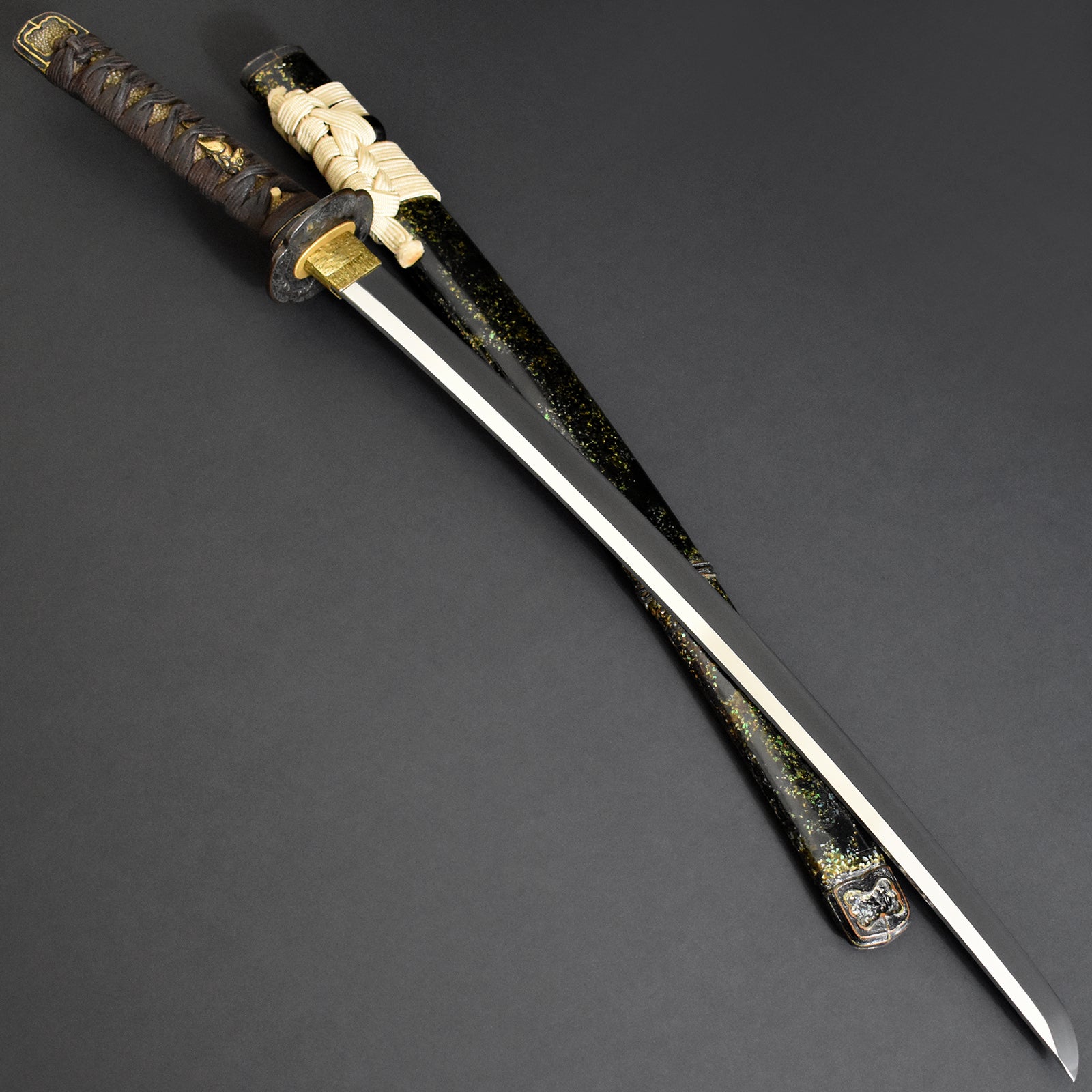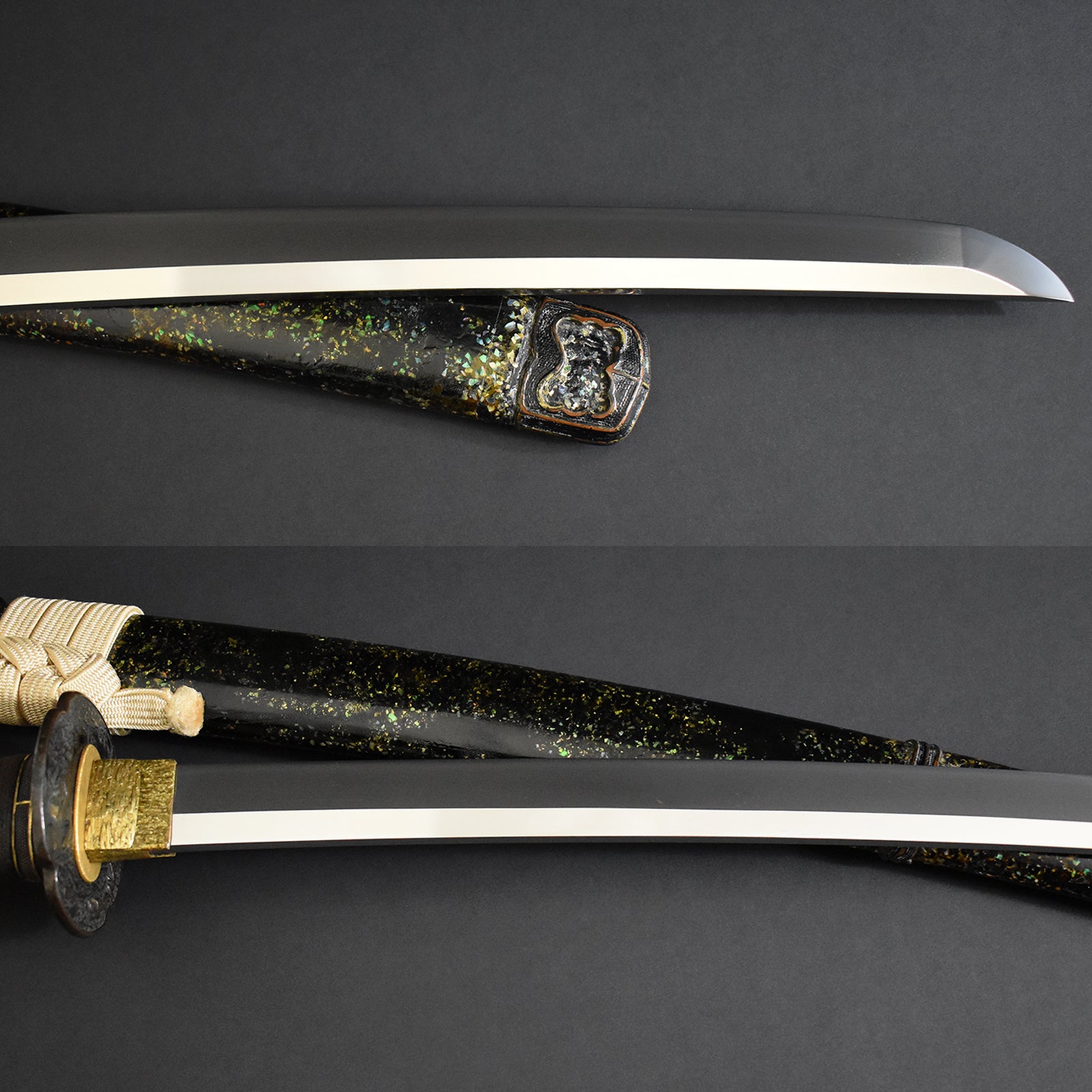 Please pay attention to awesome suguha hamon and good hada texture on the blade and elaborate high grade handachi-koshirae with excellent parts.