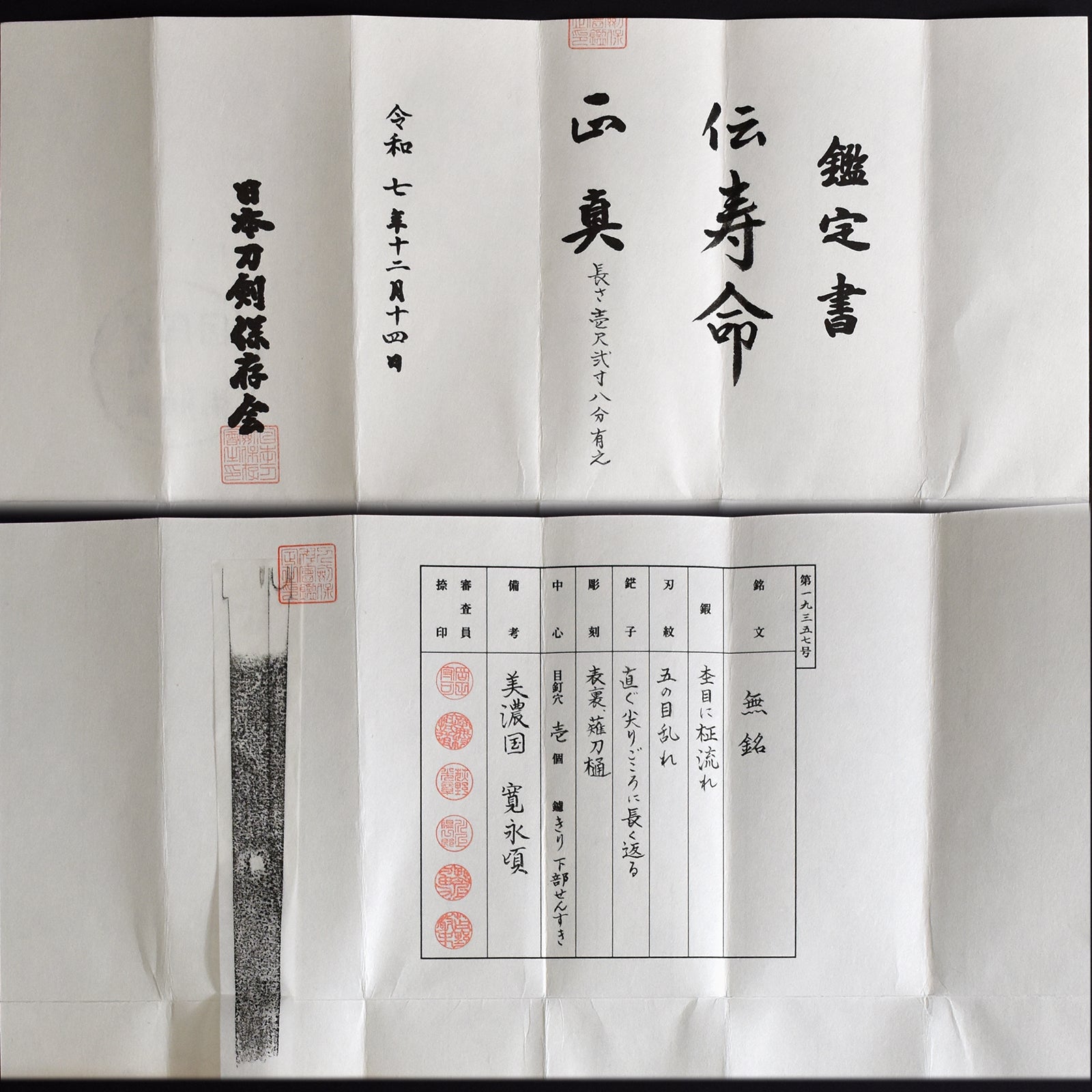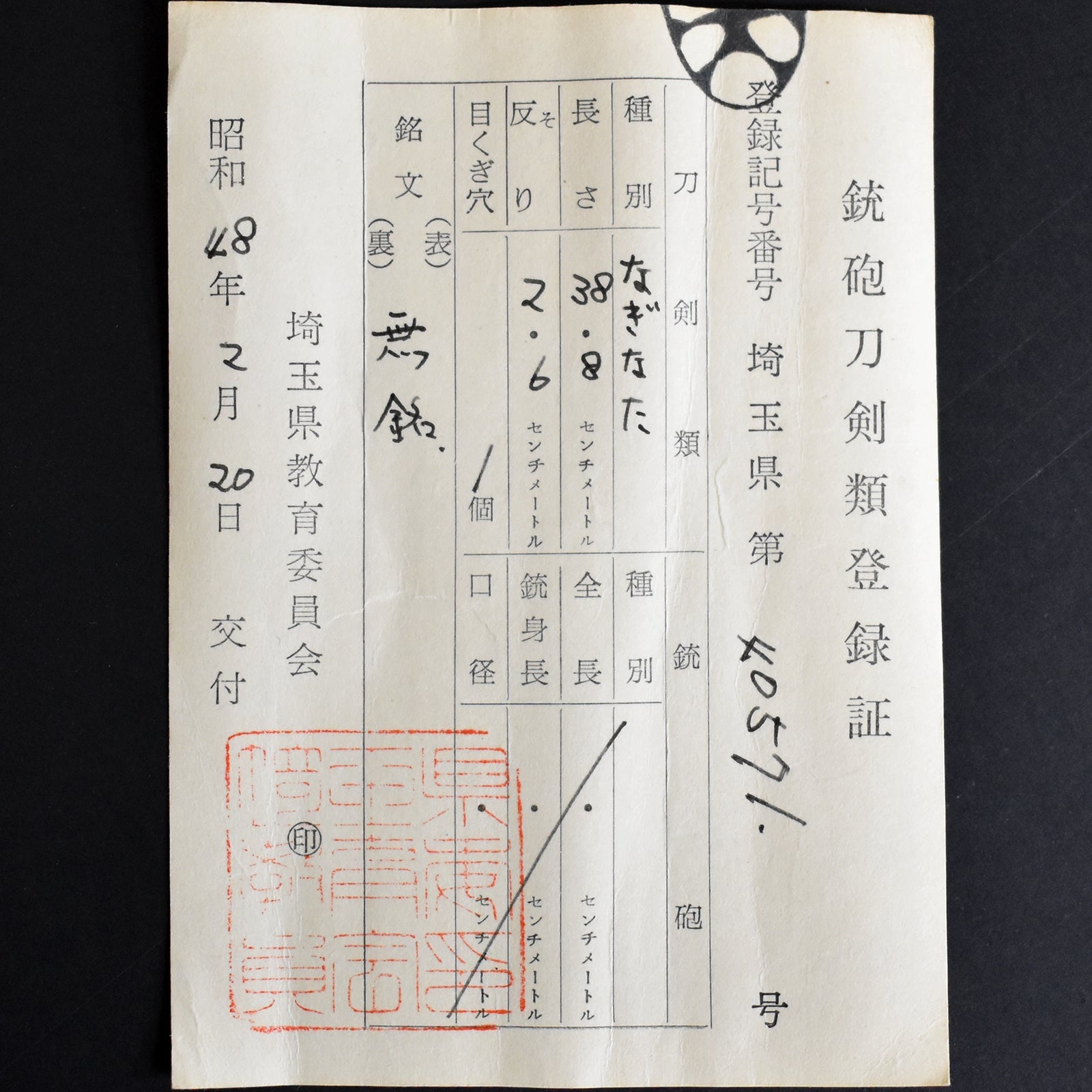 ・All our swords with hand forged blade are registered in the Agency for Cultural Affairs as artwork and The Board of Education(Cultural properties protection Committee); therefore each sword has the registration card, issued by the Board of Education.